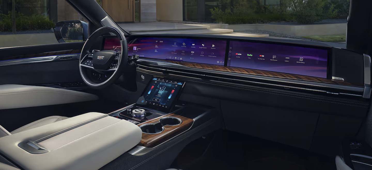 Rev up the fun inside this full-size SUV with interior technology that keeps you connected and entertained. The interior of the 2025 Cadillac Escalade Boston, MA, comes standard with Amazon Alexa® Built-In, a 19-speaker AKG™ Studio audio system, wireless Apple CarPlay® and Android Auto™ smartphone syncing, USB ports, remote start and wireless charging. Easily operate the infotainment system with the 55-inch total diagonal display and find convenience with the push-button start and keyless entry. Add even more technology to your drive in premium trims available with rear seat 12.6-inch diagonal infotainment displays, a full-color head-up display, night vision and a 36-speaker audio system.